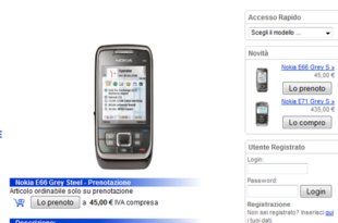p@sco segnala la disponibilità del nuovo Nokia E66 sullo store NokiaShop.it Il prezzo è di 445 € e per prenotarlo bisogna versare una caparra di 45€ La data di spedizione prevista è per il 15 di Luglio QUI trovate la pagina dello store Sicuramente entro qualche giorno sarà possibile prenotarlo …