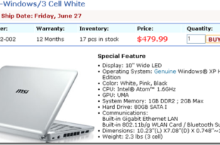 Lo shop ufficiale MSI Americano, ha slittato di due settimane la spedizione del nuovo WIND U100, mini notebook attesissimo dal mercato. La data fissata ora è il 27 Giugno. Purtroppo però, abbiamo la conferma della batteria a 3 celle, in questo caso il Wind costerà 479$ anzichè 499$ Uno sconticino …