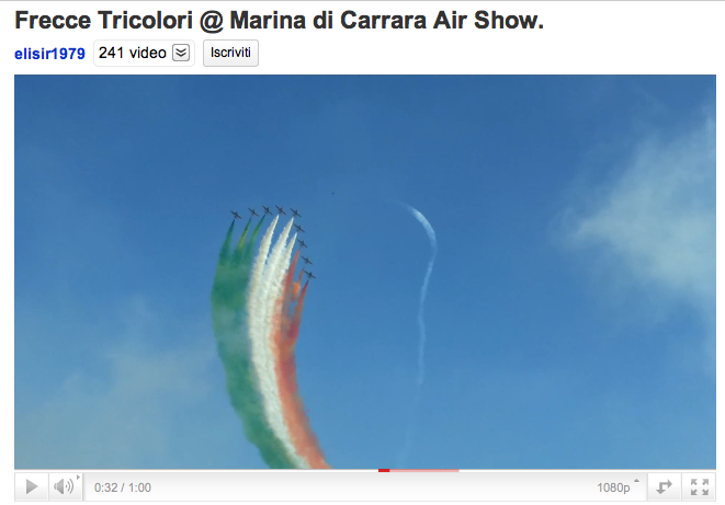 Questo pomeriggio, lungo il litorale di Marina di Carrara, si è tenuta la manifestazione “Marina di Carra Air Show” Per l’ occasione hanno sfilato le Frecce Tricolori della Pattuglia Acrobatica Nazionale, tenendo per oltre 20 minuti 200.000 persone con il naso all’ insù. Ho registrato qualche video con il Galaxy …