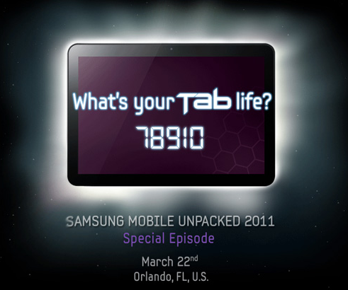 Samsung ha fissato un nuovo evento “Samsung Unpacked” per il giorno 22 Marzo 2011. Nell’ immagine si legge il numero 78910, il significato di questo messaggio è abbastanza chiaro.