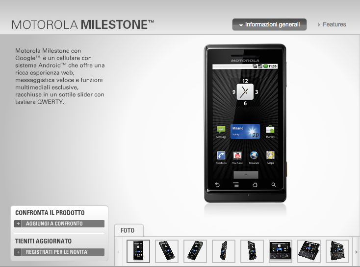 Leggi tuttoPer sbaglio, o per scelta, Motorola ha reso disponibile per poche ore tutte le informazioni ufficiali sul tanto atteso terminale DROID! Naturalmente la notizia ha subito fatto il giro del web e non è sfuggito nulla! Vediamo la sua scheda tecnica completa!