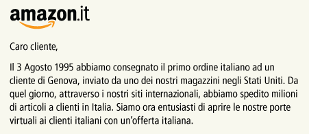 Il popolare negozio OnLine Amazon arriva anche in Italia. Lo si può raggiungere all’ indirizzo www.amazon.it e al momento troviamo i seguenti prodotti : Musica libri DVD software videogiochi elettronica informatica giocattoli piccoli elettrodomestici orologi Molto interessante è l’ offerta dedicata al Samsung Galaxy Tab. Si tratta di un modello …