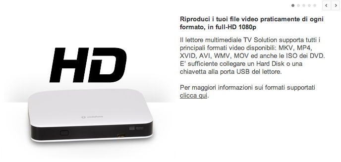 Vodafone TV Solution (xone edition) è un box multimediale dotato di ricevitore digitale terrestre, che per soli 29 euro (al momento in offerta) ti permette di vedere Filmati in qualsiasi formato video, navigare in internet con la tua TV (solo chi ha la vodafone station), registrare i programmi su hard …